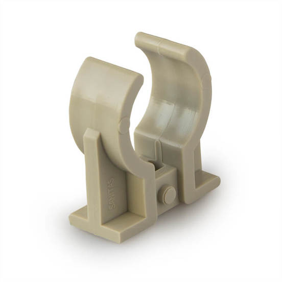 Полипропилен /PPR/ одинарная скоба марки SANITAS диаметром 25 мм. Хомут предназначен для труб PPR с наружным диаметром 25 мм. Он используется для крепления труб к стенам и для их укрепления, когда они охватывают большую длину.