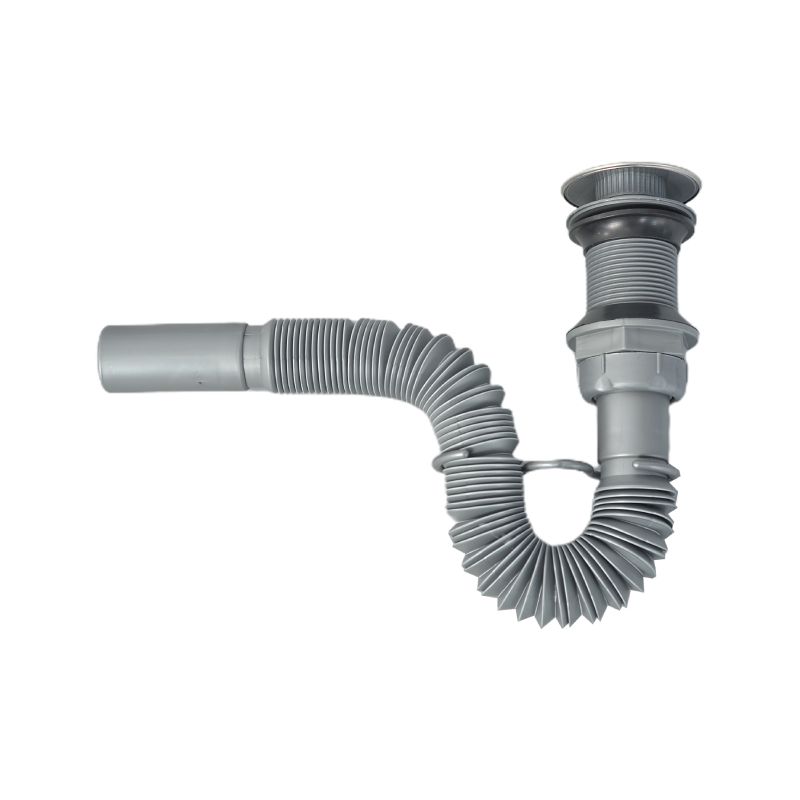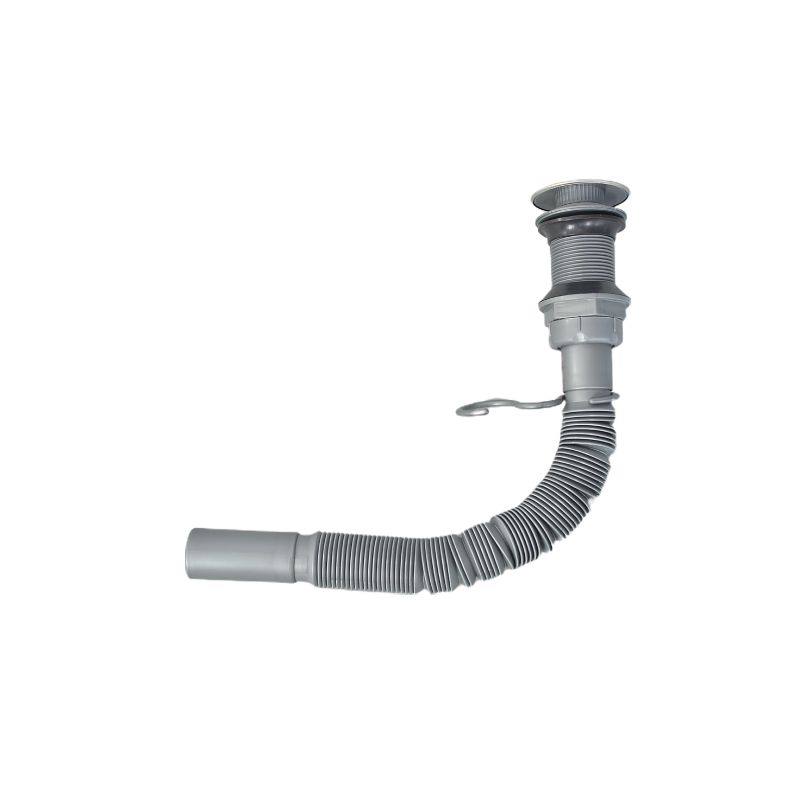 Сифон для раковины с гофрированной трубой и механизмом «клик-клак» для закрытия и открытия. Сифон имеет внутренний механизм из нержавеющей стали. Он подходит для непосредственной установки без необходимости использования дополнительных аксессуаров.