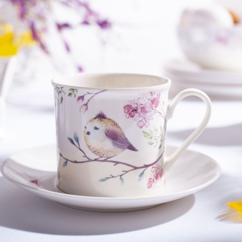 Фарфоровая чашка с блюдцем для чая или кофе. Можно мыть в посудомоечной машине и использовать в микроволновой печи. Фарфоровые чашки и блюдца изготовлены в соответствии с высокими стандартами качества. Они прекрасно сочетаются с остальной кухонной утварью и кухонными аксессуарами из этой же серии.