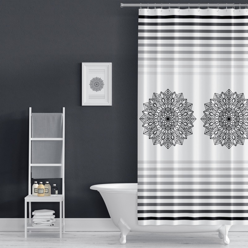 Штора для ванной шириной 180 см и высотой 200 см. Изготовлена из 100% полиэстера плотностью 90 г/кв.м. Материал имеет водоотталкивающую пропитку. Легко стирается и гладится, быстро сохнет, обладает повышенной износостойкостью.