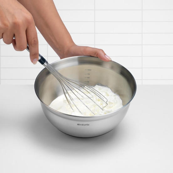 Слегка изогнутый край чаши специально разработан, чтобы удерживать ее в оптимальном положении для перемешивания, а силиконовое покрытие на ее дне предотвращает скольжение. Внутренняя часть чаши очерчена, что позволяет добавлять и смешивать именно ингредиенты из ваших рецептов.