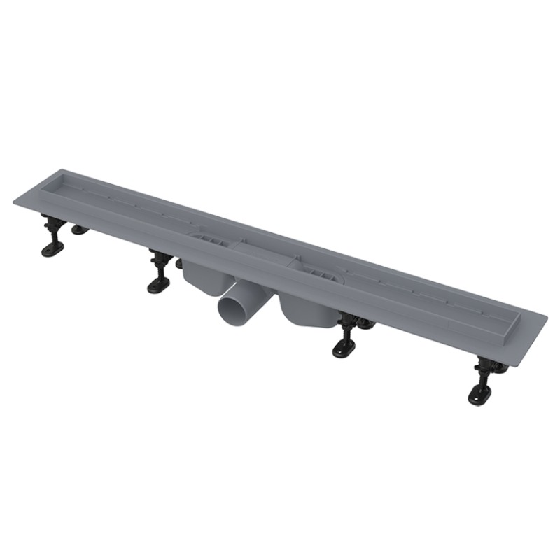 Линейный сифон для ванны доступен без сетки, входящей в комплект. Совместим со всеми типами решеток для линейных сифонов ALCAPLAST длиной 850 мм - сплошными решетками, перфорированными решетками и решетками для заделки плитки.