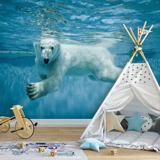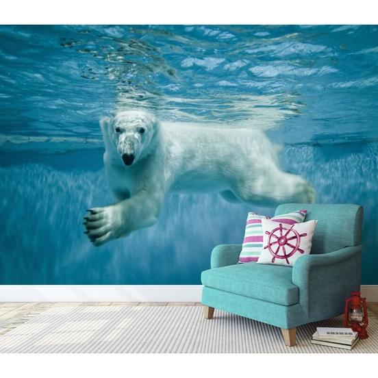 Качественные, широкоформатные фотообои с изображением белого медведя. Фотообои подходят для наклеивания на стену в любом помещении, не подверженном воздействию повышенного уровня влажности.