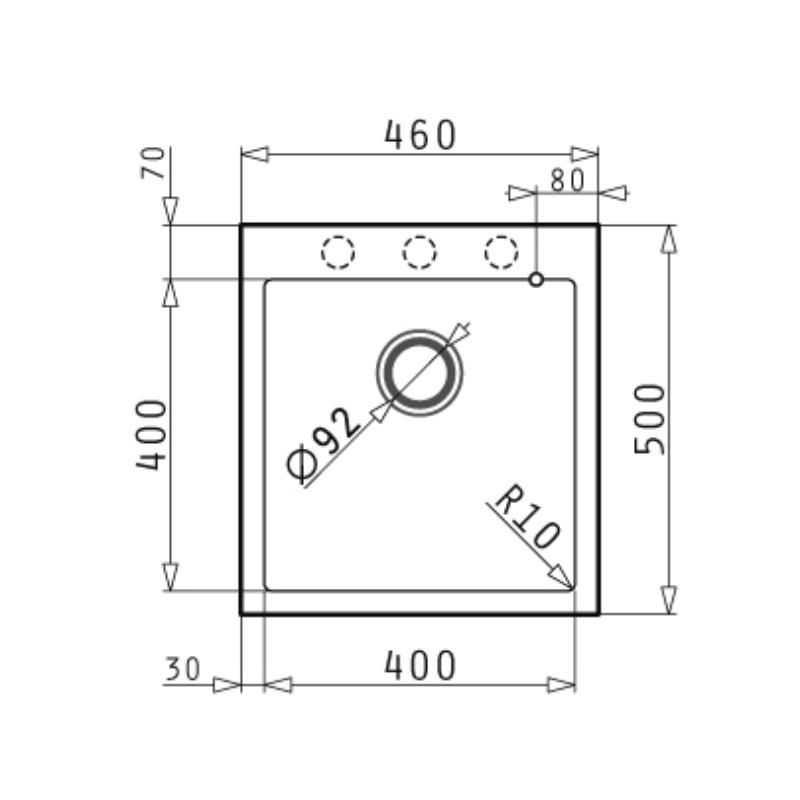 Композитная мойка доступна без отверстий под смеситель или встроенный диспенсер. Их можно примерить по желанию клиента во время подготовки заказа. Отверстия могут быть стандартного размера - диаметр φ35 мм.