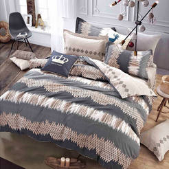 Спальный гарнитур для двоих в 4-х частях бренда AKHOME. Изготовлен из высококачественной ткани Ранфорс – 100% хлопок. Спальный комплект состоит из простыни, покрывала и 2 наволочек. Детали имеют печатный рисунок.