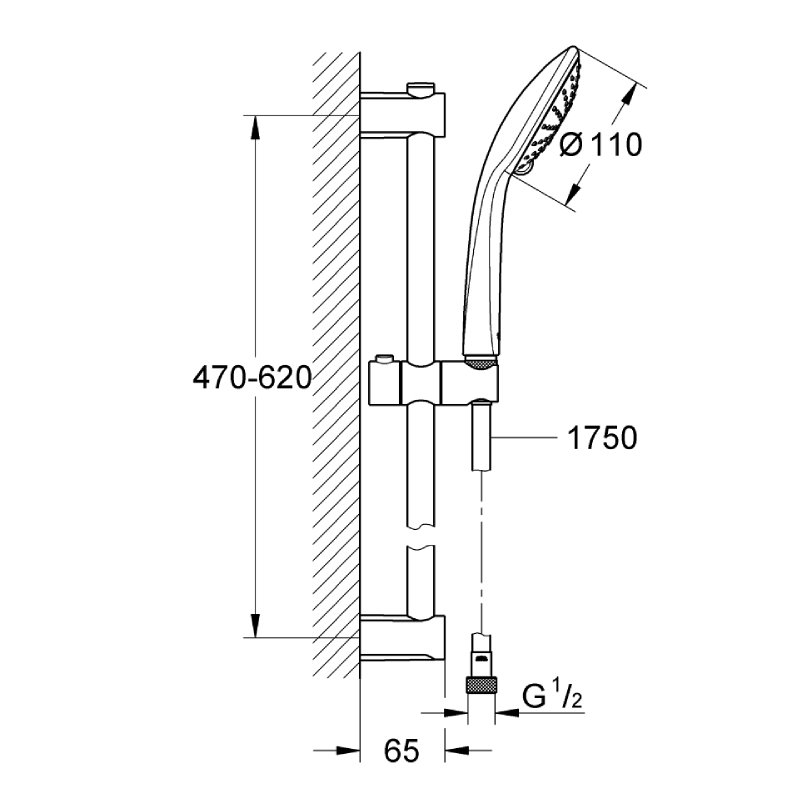 Подвес на трубе с ручным душем и шлангом Vitalio Joy 110 GROHE 27326000