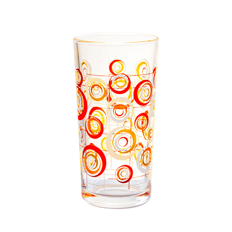 Набор из 6 шт. стаканчики для воды/безалкогольных напитков серии Maya. Из стекла. Прозрачные печатные разноцветные круги.