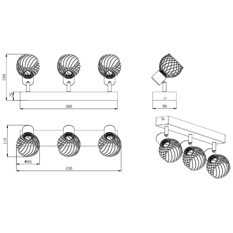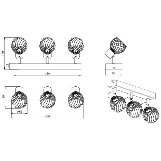 Спот тройной 3 x E14 Ardon черный с золотом R81383080 TRIO