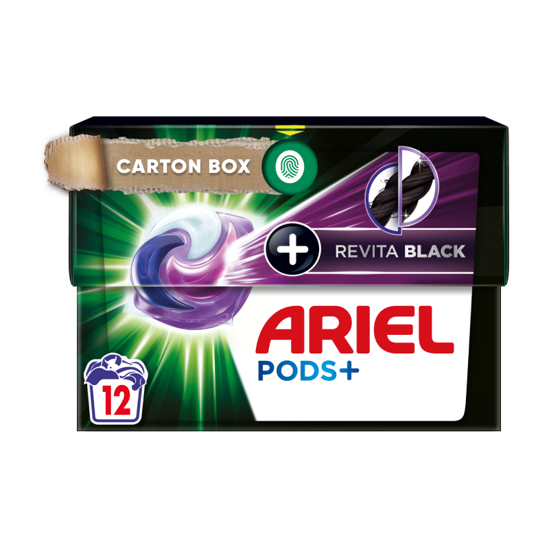 Капсулы для стирки Ариэль черные. На 12 стирок. Освежает черный цвет и придает блеск темным цветам благодаря технологии омоложения волокон даже при холодной стирке. Они обеспечивают исключительную очищающую способность в одной маленькой капсуле с уникальным дизайном с несколькими отделениями, который гарантирует стабильность и разделение ингредиентов.