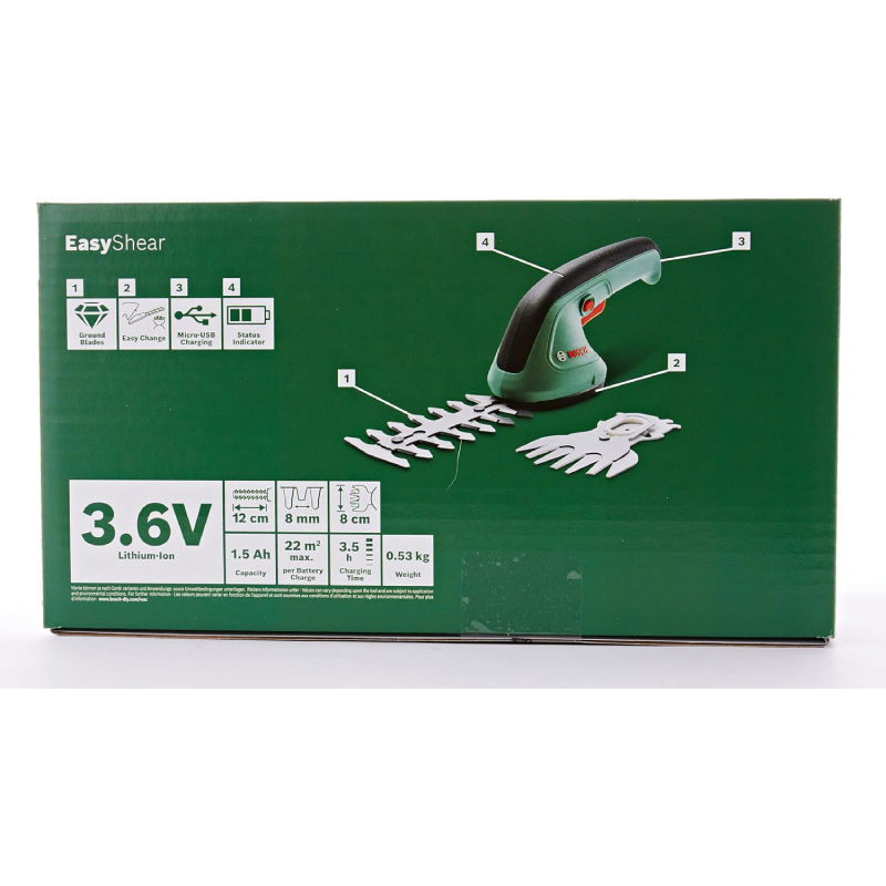 Аккумуляторная косилка для травы и кустов EasyShear 3,6 В/1,5 Ач, литий-ионная, зарядка через USB/без зарядного устройства BOSCH