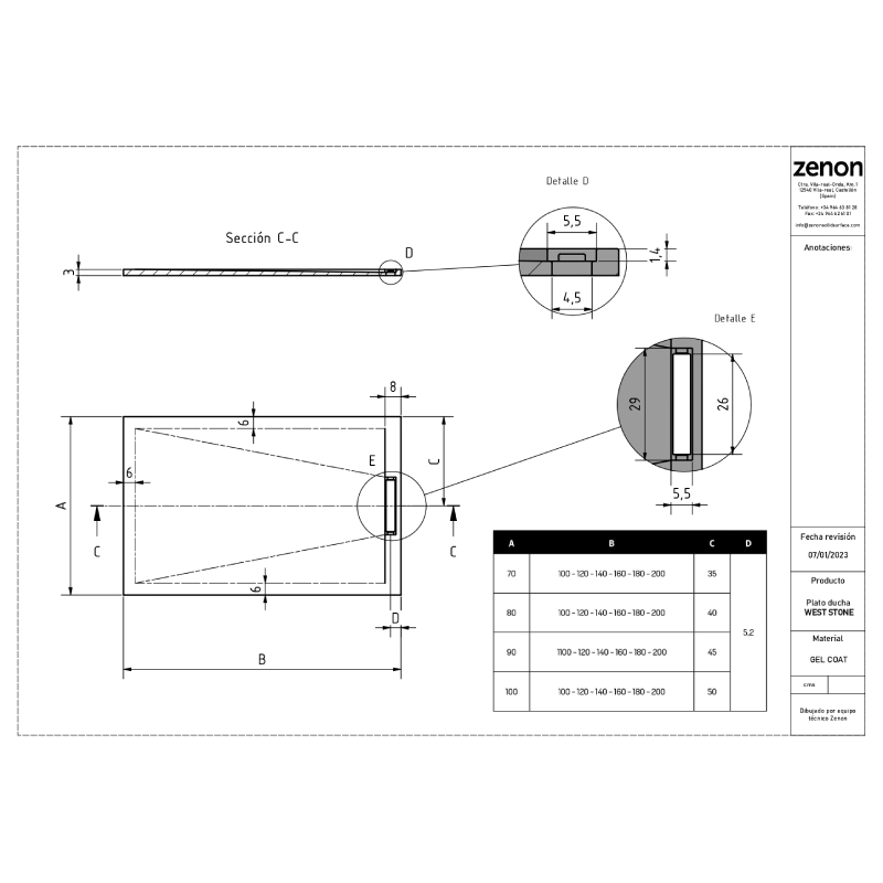 Душевой поддон 80 х 100 см Западный цемент ZENON.