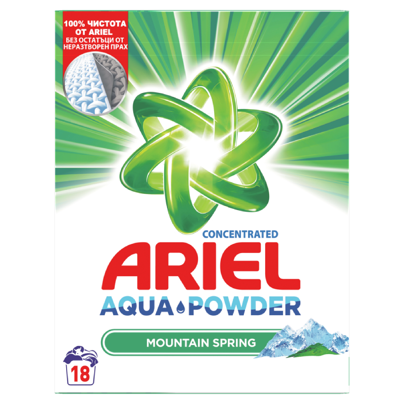 Стиральный порошок Ариэль для белого белья. С ароматом Горной свежести. Этот порошок позволит вам добиться сенсационных результатов при стирке даже самой грязной одежды и тканей. Технология Aqua Powder глубоко проникает в волокна ткани, благодаря чему без особых проблем удаляет даже самые стойкие пятна.