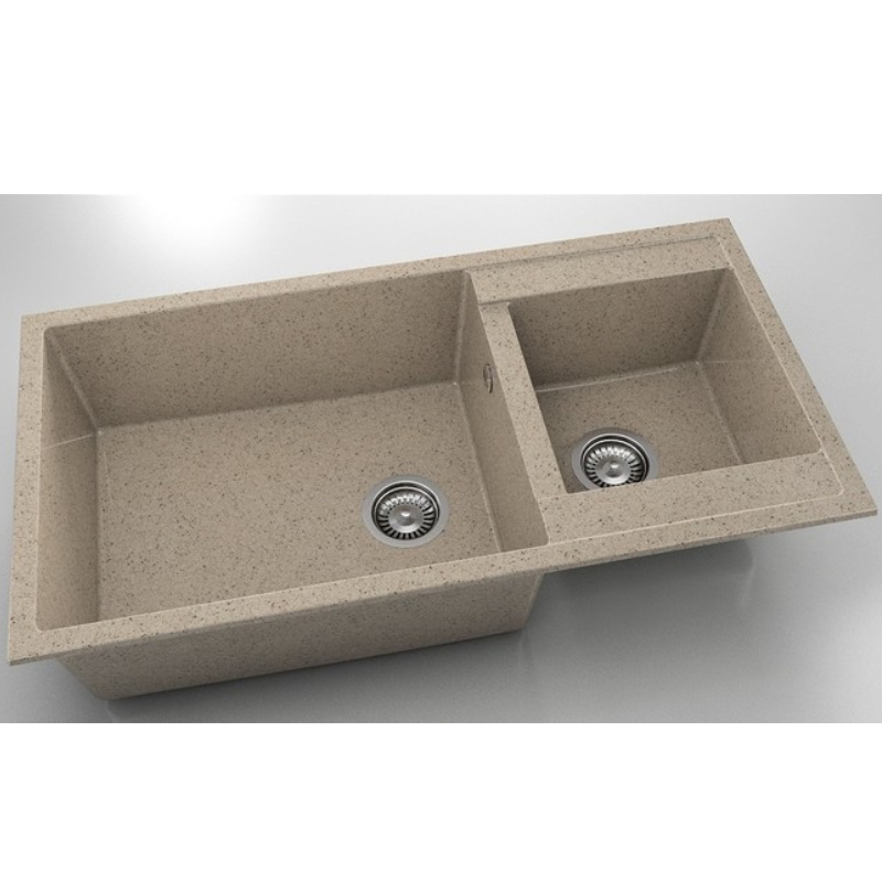 Эта двойная мойка — идеальное решение для домохозяйств, которым нужно удобство и эффективность при мытье посуды и приготовлении пищи. С основной чашей размером 55 x 43 см и дополнительной 30 x 30 см она обеспечивает пространство для выполнения различных кухонных задач одновременно.