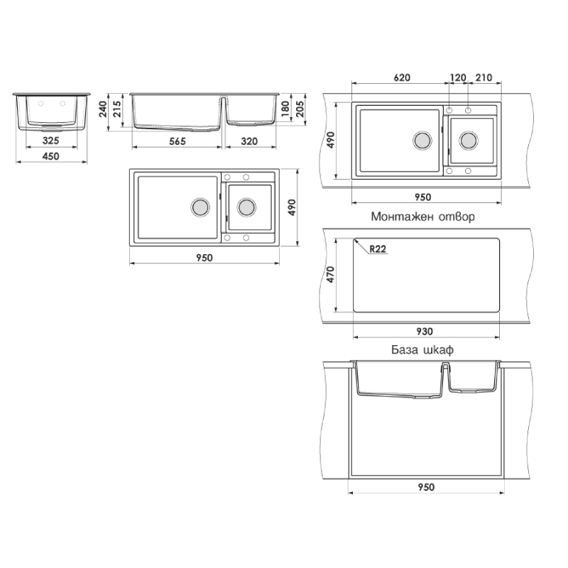 - Чаша 1: 550 x 430 мм / глубина 210 мм