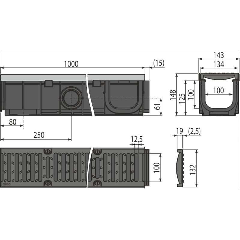 Швеллер 1 м черный с металлической кромкой чугунная решетка (С250) AVZ103-R202 ALCA.