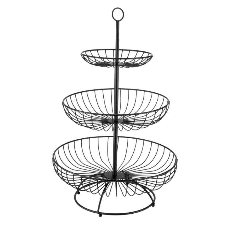 Поднос для фруктов на 3 уровнях ф30/25/16,5 см, высота 48 см черный металлик.
