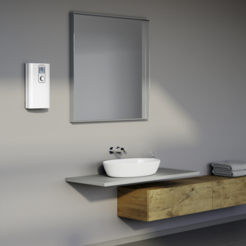 STIEBEL ELTRON DCE-X PREMIUM 10/12 кВт — это передовое технологическое решение для быстрого, экономичного и точного нагрева горячей воды в ванной комнате и на кухне. Этот однофазный электронный проточный водонагреватель, произведенный в Германии, подходит для домохозяйств, ценящих эффективность, безопасность и современный комфорт. Благодаря интеллектуальной технологии 4i и полностью электронному управлению мощностью водонагреватель поддерживает постоянную температуру с отклонением всего 0,5 °C, независимо от колебаний расхода воды или давления.