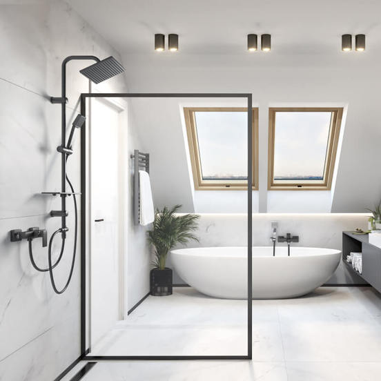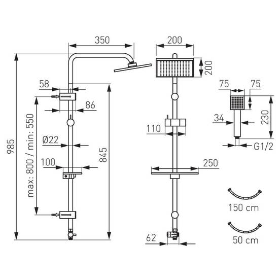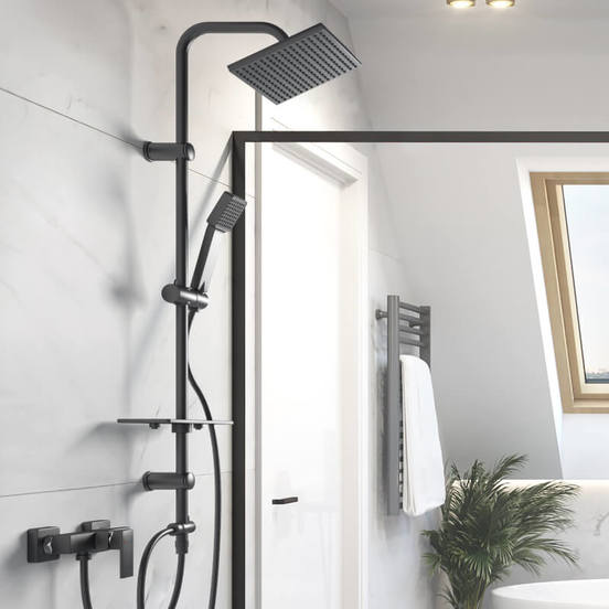 Душевая система - трубчатый подвес с ручным душем и душевой головкой 20 см, черная Squerro Lux NP24-BL FERRO.