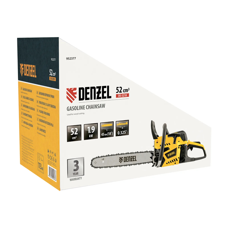 3 л.с. бензопила 45 см штанга 52 см3 легкий старт DS-5218 DENZEL.