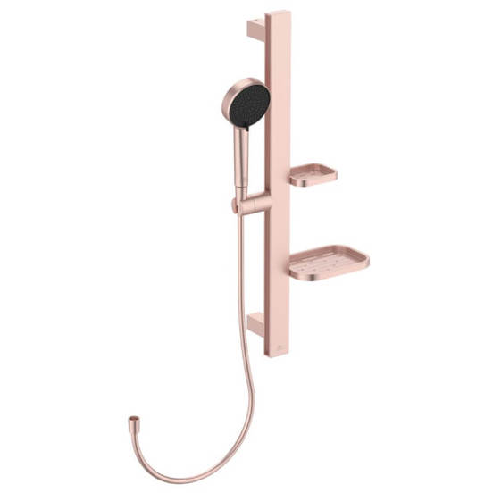 Душевой гарнитур Idealrain Alu+ BD586RO от IDEAL STANDARD сочетает в себе стиль, функциональность и качество в одном элегантном аксессуаре для современной ванной комнаты. Эта модель с тонким сатиновым покрытием нежно-розового цвета станет идеальным решением для ценителей современного дизайна и практичности.