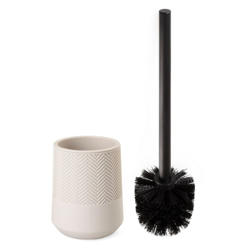 Ёршик для унитаза Hermosa — элегантное и практичное дополнение к любой современной ванной комнате. Изготовлен из высококачественного АБС-материала нежного бежевого цвета, который легко впишется в различные стили интерьера. Поверхность контейнера украшена стильным узором «елочка», что придает ему изысканный и современный вид. Черная чистящая часть создает визуальный контраст и обеспечивает эффективность и простоту использования.
