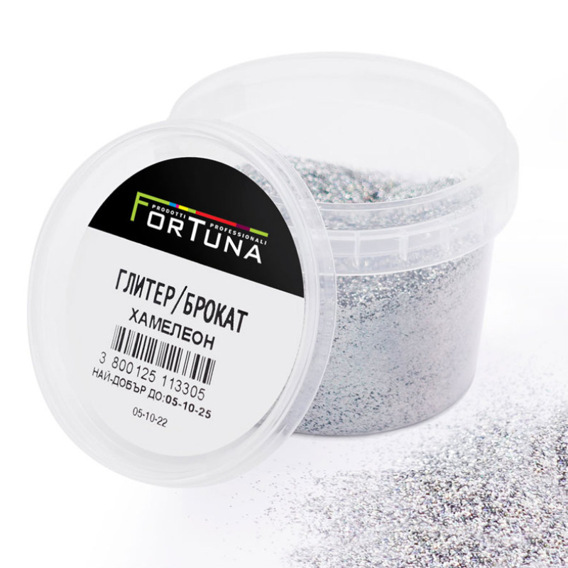 FORTUNA Chameleon brocade — это специальный декоративный пигмент, предназначенный для использования в красках и штукатурках на водной основе. Он дает уникальный, меняющийся цвет с эффектом «хамелеона», который переливается разными оттенками в зависимости от освещения и угла обзора. Этот эффект придает глубину и изысканный блеск любой внутренней поверхности, делая ее более яркой и художественной.