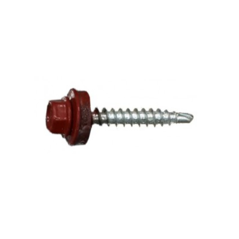 Саморез BRAVO 4,8 x 35 мм RAL 3011 предназначен для надежного крепления металлических кровельных листов к деревянной подконструкции. Саморез изготовлен из стали и имеет цинковое покрытие, которое защищает его от коррозии и обеспечивает длительную устойчивость к атмосферным воздействиям. Шестигранная головка с фланцем обеспечивает легкое и надежное завинчивание с помощью подходящей биты SW 8, а встроенная шайба обеспечивает дополнительную герметизацию, предотвращая проникновение влаги.