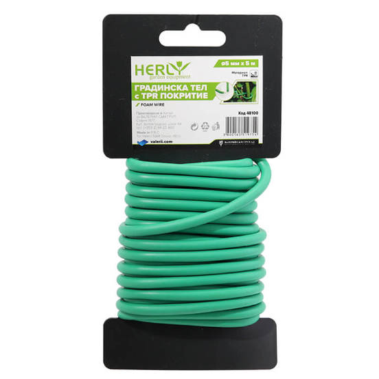Универсальная садовая проволока от бренда HERLY. С плоским ПВХ-покрытием и защитой от УФ-излучения. Предназначен для крепления растений к кольям для томатов и другим растениям, требующим стабильного крепления/поддержки.