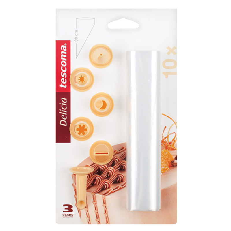 Создавайте кондитерские шедевры с этим практичным и удобным набором Tescoma. Набор подойдёт как новичкам, так и опытным кулинарам. В нём есть всё необходимое для украшения тортов, кексов, эклеров, печенья и других десертов. Изготовленный из высококачественных и безопасных для пищевых продуктов материалов, набор прост в использовании и очистке.