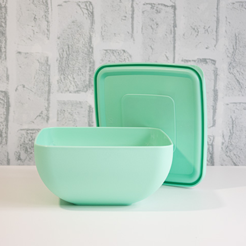 Изготовленная из легкого, но прочного пластика, миска выдерживает ежедневное использование и легко моется. Светло-бирюзовый цвет придает контейнеру свежий и современный вид, который хорошо впишется в интерьер вашей кухни или холодильника.