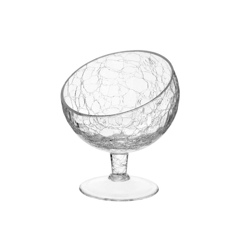 Изготовленная из высококачественного прозрачного стекла, чаша имеет эффект «трещин» — визуально треснувшее стекло создает изысканный вид и подчеркивает содержимое.