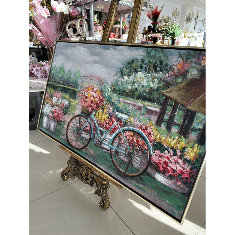 Золотая рама добавляет изысканный акцент роскоши и подчеркивает художественную ценность произведения. Прямоугольная форма делает его подходящим для различных вариантов оформления интерьера — над диваном, в столовой, прихожей или кабинете.