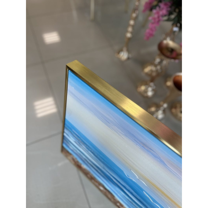 Картина выполнена на холсте с использованием цифровой технологии масляной живописи и ручной многослойной рельефной росписи, что придает ей объем и художественный характер. Она оформлена стильной золотой рамой, которая подчеркивает ее элегантность и делает ее изысканным акцентом для гостиной, столовой, прихожей, отеля или офиса.