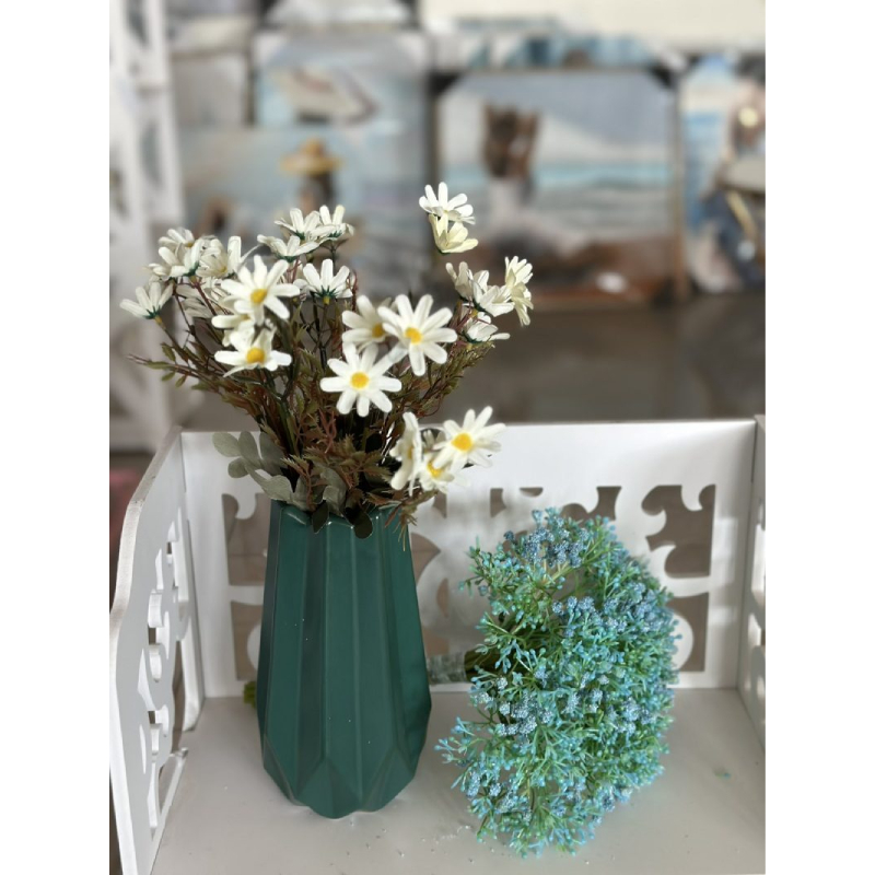 Темно-зеленая ваза — это стильный и изысканный декоративный элемент, который добавит элегантности и уюта любому интерьеру. Ее насыщенный зеленый оттенок создает ощущение естественной свежести и гармонии, легко сочетаясь с различными цветовыми схемами и мебелью.