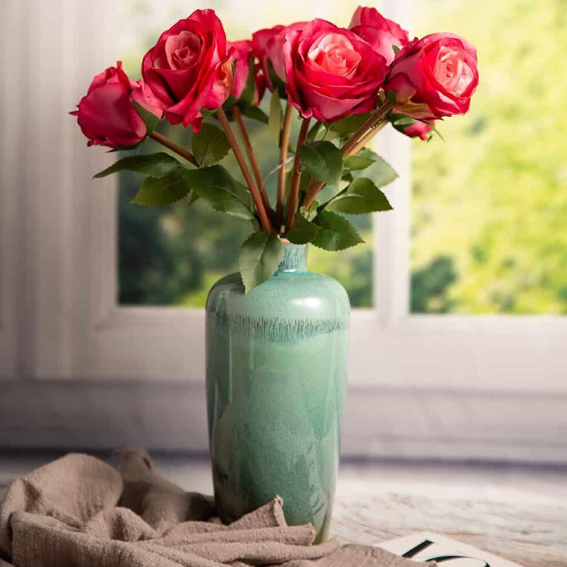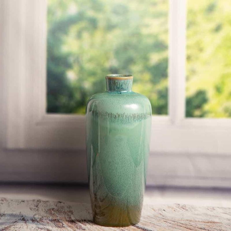 Зелёная ваза высотой 21,5 см — это свежий и элегантный декоративный акцент, который привнесёт ощущение природы и гармонии в любой интерьер. Насыщенный зелёный оттенок добавляет живости и легко сочетается с различными стилями мебели.