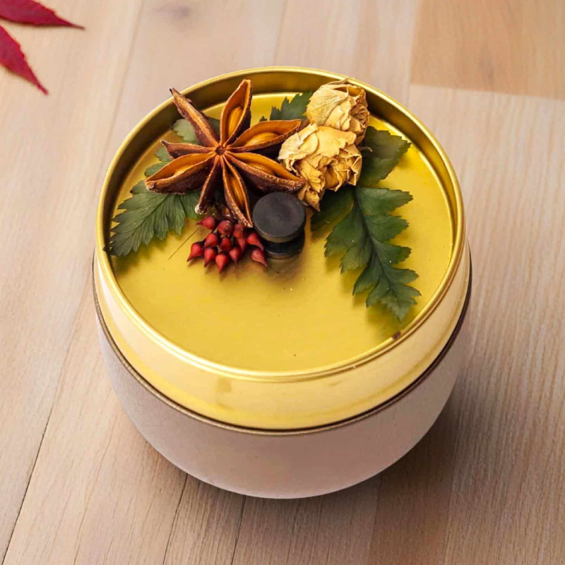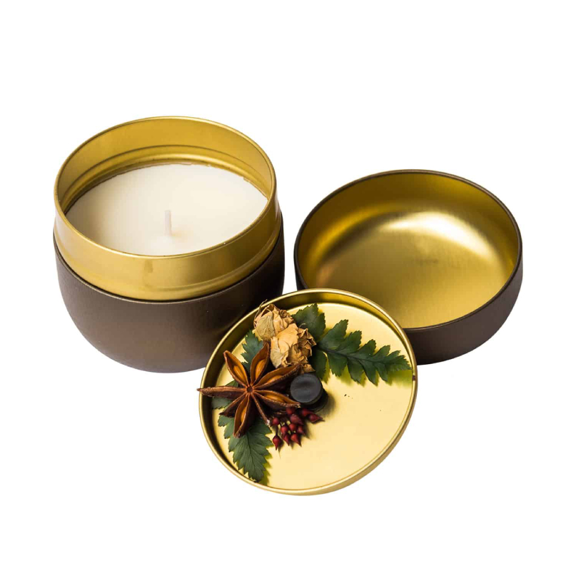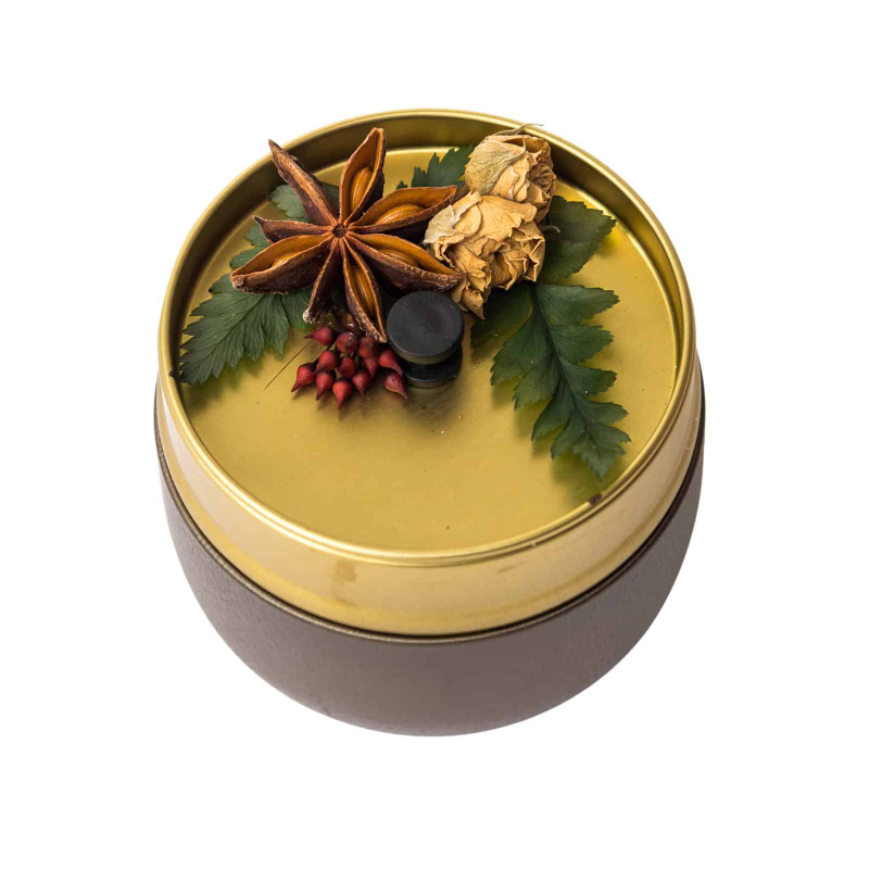Ароматическая свеча в металлической коробке с крышкой — это стильный и изысканный аксессуар для дома, сочетающий в себе эстетику и функциональность. Компактный дизайн и декоративный вид делают её элегантным акцентом в интерьере, подходящим как для повседневного использования, так и в качестве подарка по особому случаю.