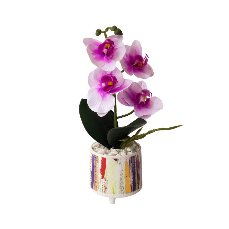 Добавьте элегантности и цвета в свой интерьер с помощью этой стильной искусственной орхидеи цвета белого цикламена, помещенной в изысканный керамический горшок. Благодаря нежным, проработанным цветам и листьям, она станет прекрасным дополнением к вашему дому, офису или учреждению, не требуя особого ухода.
