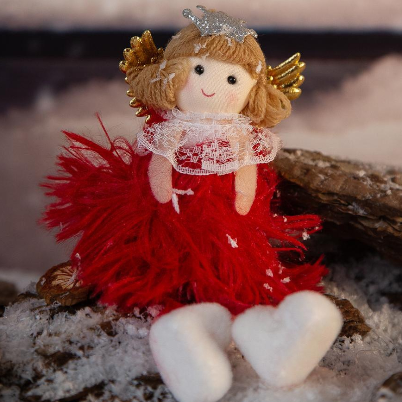 Ёлочная игрушка «Фея» 16 см (26033385) – нежное и сказочное дополнение к праздничному оформлению. Каждая фигурка выполнена из мягкого текстиля и впечатляет пышным платьем, маленькими крылышками, короной и вязаными ножками с туфельками в форме сердечек. В серию входят четыре модели разных цветов: красный, белый, серый и коричневый – каждая из них привносит своё очарование и рождественское настроение.