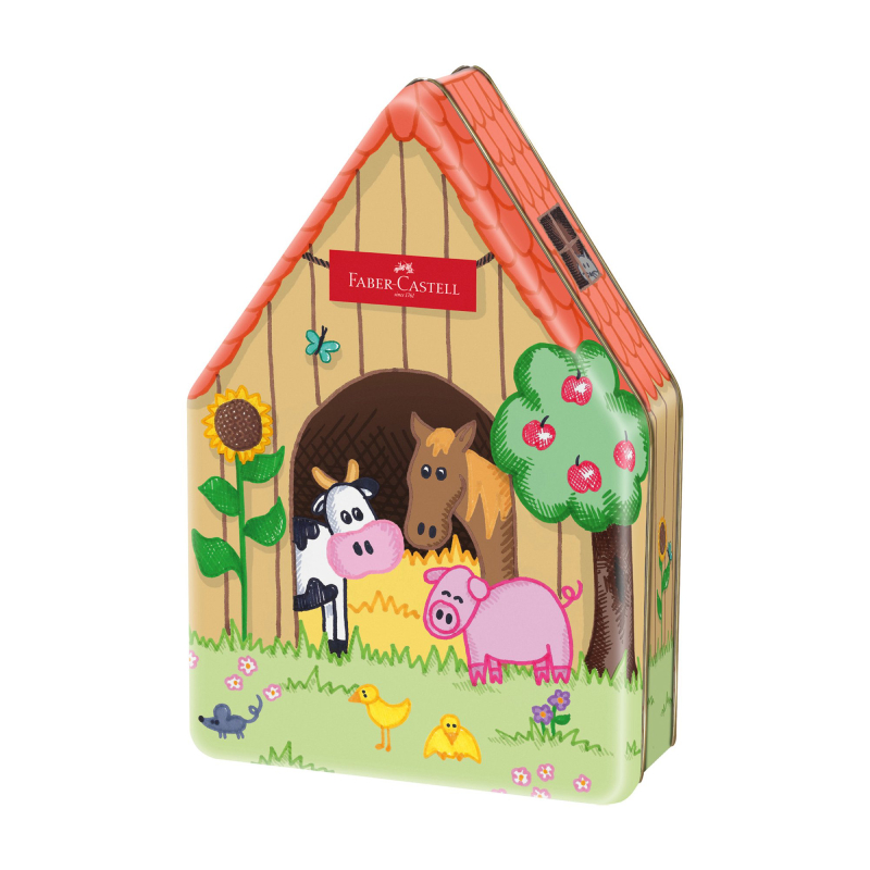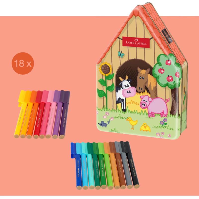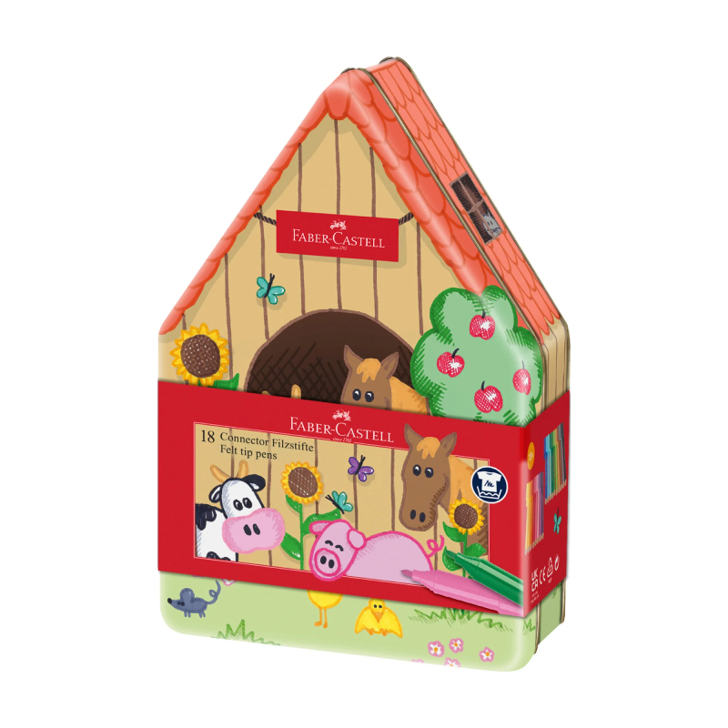 В набор входят 18 фломастеров, которые можно соединять друг с другом с помощью специальных зажимов на колпачках, что позволяет создавать различные формы и комбинации. Фломастеры легко смываются с большинства текстильных поверхностей. Набор поставляется в красивой коробке с изображением фермы, подходящей для хранения или в качестве подарка.