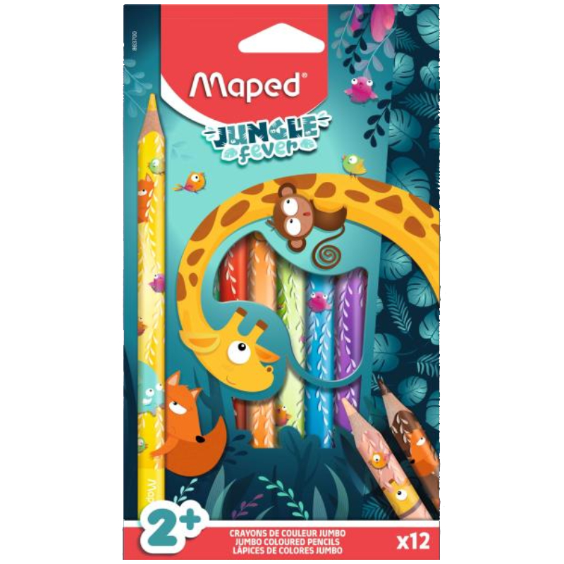 Набор больших цветных карандашей Maped Jungle Fever разработан специально для самых юных художников (от 2 лет), предлагая удобный и безопасный инструмент для первых шагов в рисовании. Благодаря широкому корпусу и треугольной форме, их легко держать маленьким ручкам, что способствует правильному захвату и контролю при рисовании. В набор входят 12 ярких и насыщенных цветов, которые стимулируют творческое воображение и радуют своим жизнерадостным дизайном.