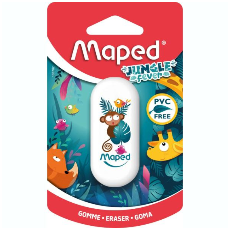 Ластик для карандашей Maped Jungle Fever — это универсальный и безопасный аксессуар для школы и творчества. Он подходит для удаления следов графита с карандашей, не повреждая бумагу, что делает его идеальным для юных школьников и любителей рисования. Ластик доступен в двух привлекательных вариантах дизайна из серии Jungle Fever, которые дополняют другие продукты коллекции.