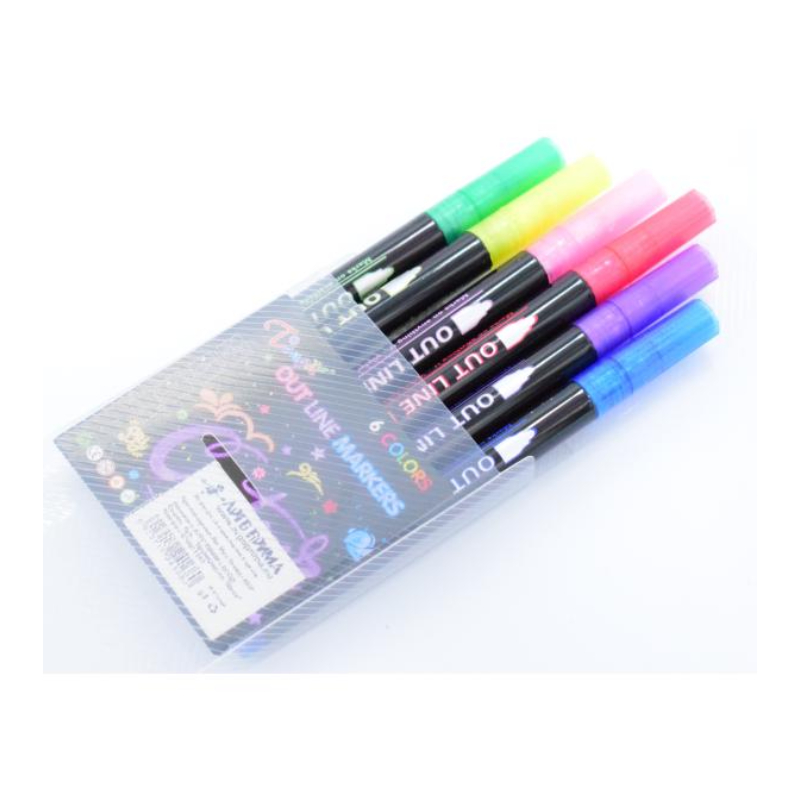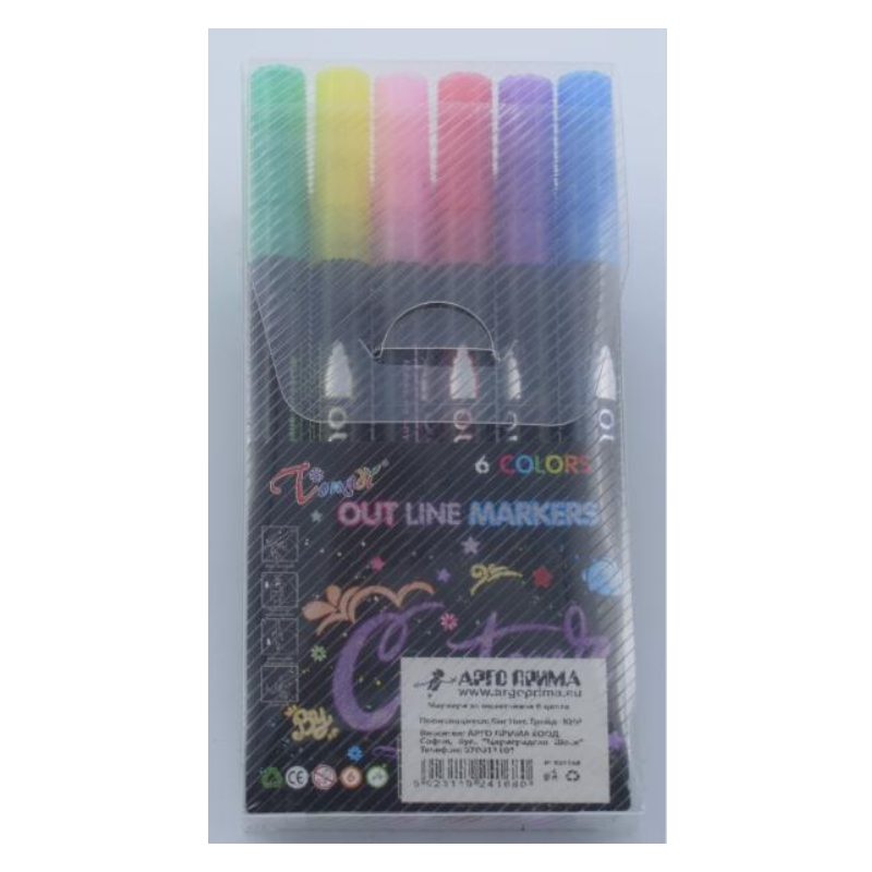 Контурные маркеры APT в наборе из 6 цветов специально разработаны для эффектных акцентов в декоре и творческих проектах. Они рисуют яркими металлическими цветами, оставляя красивый контур по краю линии, добавляя блеска и выразительности каждому рисунку. Благодаря наконечнику 2 мм и толщине линии 2-4 мм, маркеры подходят как для прорисовки мелких деталей, так и для более широких линий, рамок и декоративных элементов.
