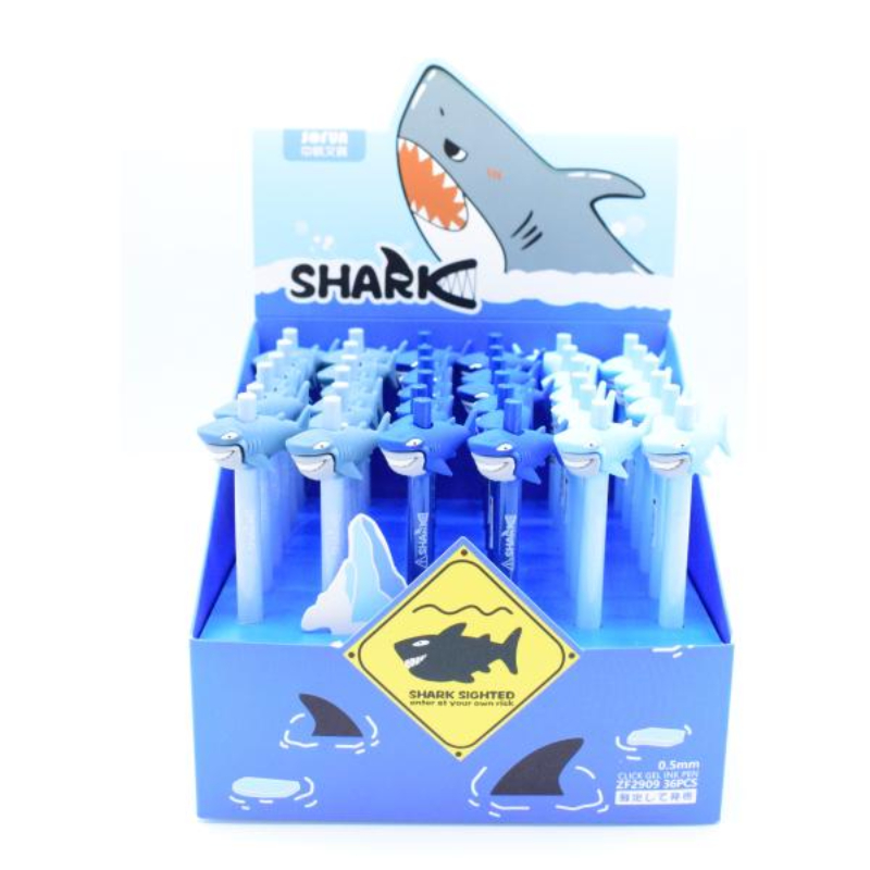 Ручка оснащена надежным кнопочным механизмом, позволяющим легко вставлять и извлекать наконечник одним нажатием. Кроме того, игрушечная акула добавляет элемент веселья, а синий цвет чернил — классический и подходит как для школы, так и для повседневного использования.