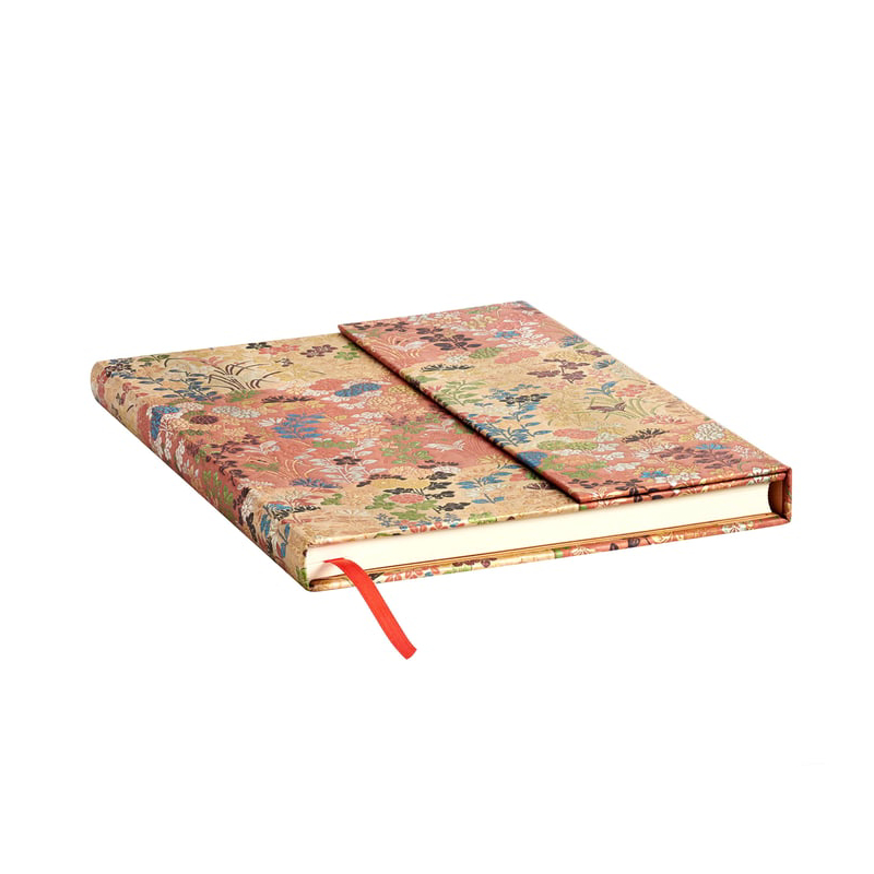Обложка блокнота Kara Ori вдохновлена дизайном кимоно эпохи Эдо (1615-1868). Термин «караори» относится к искусно вышитым традиционным женским кимоно, характерным для театра Но. Гармоничные цветочные мотивы, сбалансированная цветовая палитра и тонкие детали на обложке передают мощный дух этого классического японского искусства.