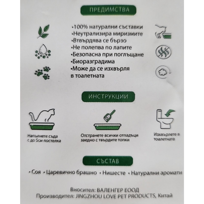 Наполнитель для кошачьего туалета «Лаванда» с соевым ароматом — идеальное решение для владельцев кошек, которые ищут безопасный, эффективный и экологичный продукт. Изготовленный из 100% натуральных ингредиентов, таких как соя, кукурузная мука и крахмал, этот наполнитель быстро затвердевает и надежно нейтрализует неприятные запахи. Аромат лаванды дарит свежесть и комфорт как кошке, так и всему дому.