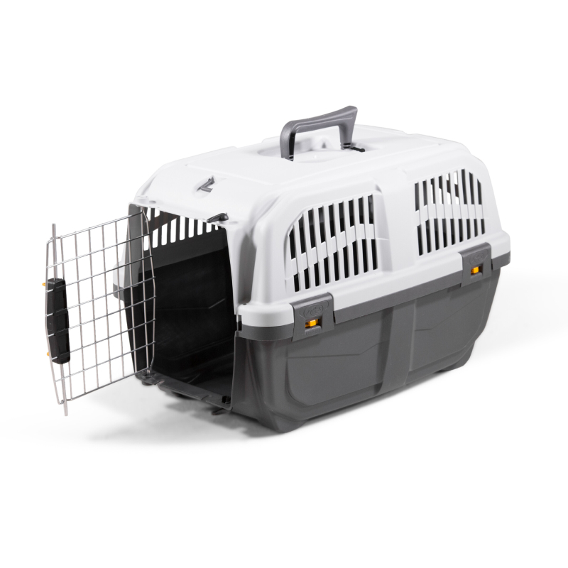 Практичная и надежная клетка для перевозки собак, предназначенная для питомцев весом до 18 кг. Модель оснащена множеством вентиляционных отверстий, обеспечивающих хорошую циркуляцию воздуха и комфорт во время поездки.