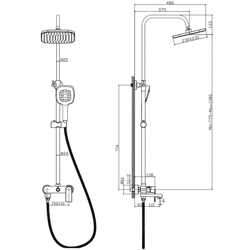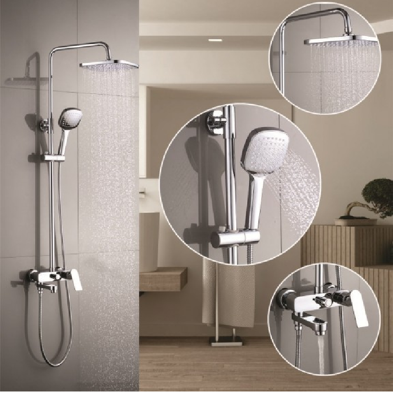 В комплект входит телескопическая трубка-подвес с регулируемой длиной, большой квадратный душевой поддон, однофункциональный ручной душ и гибкий шланг длиной 1,5 метра. Душевая система имеет металлический переключатель с керамической вставкой и съемный излив, что делает ее удобной для повседневного использования и легко адаптируемой к потребностям пользователя.