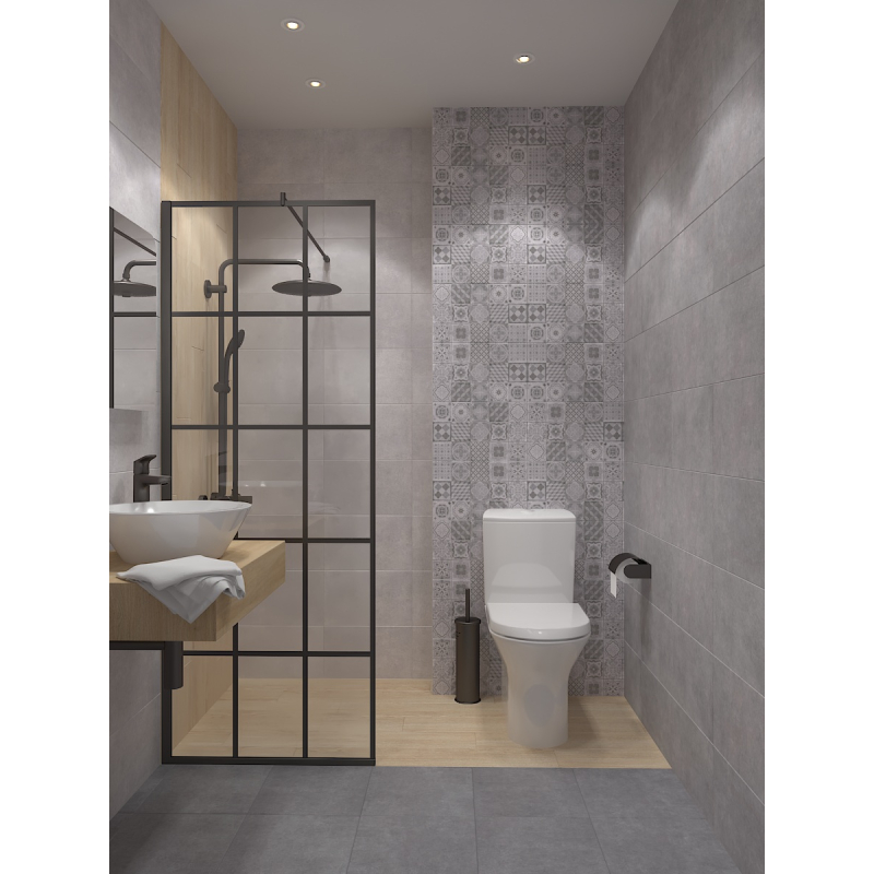 Подходит для ванных комнат, кухонь и других внутренних помещений. Создает современный индустриальный стиль и легко сочетается с деревом, металлом и нейтральными цветами. Влагостойкий и простой в уходе.