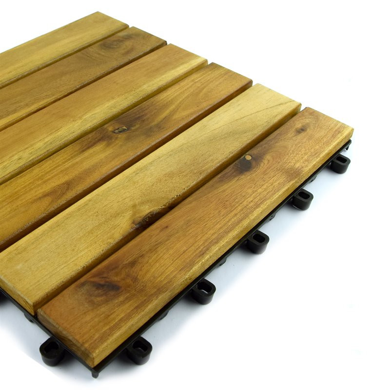 Создайте стильный и уютный уголок на открытом воздухе с помощью модульной плитки для патио из акации. Изготовленная из натурального дерева на прочной и эластичной основе из ПВХ, она сочетает в себе природную красоту акации с практичностью и удобством монтажа. Теперь вы можете преобразить свою террасу, балкон или сад быстро и без специальных инструментов — пластины защелкиваются друг в друга, как пазл.