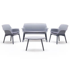 Пластиковый набор из высококачественного перерабатываемого полипропилена с имитацией ротанга, защитой от ультрафиолета.